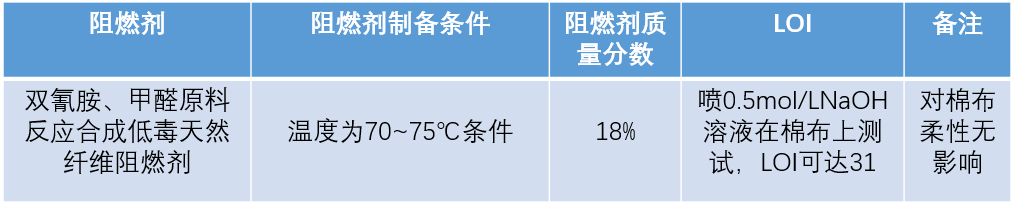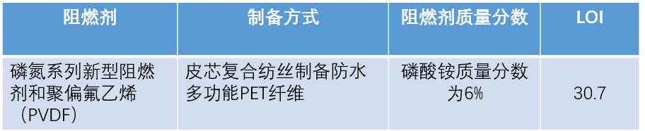 以三聚氰胺、甲醛、聚乙烯醇水溶液為原料反應製得紡絲原料,通過濕法紡絲得到三聚氰胺甲醛——聚乙烯醇(MF——PVA)纖維,加入硼酸,可以抑製MF樹脂溶出,LOI可達40。